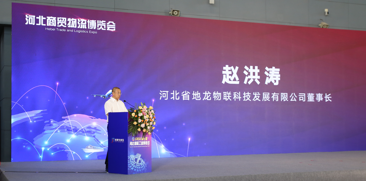 開(kāi)幕式期間,河北省地龍物聯(lián)科技發(fā)展有限公司董事長(zhǎng)趙洪濤受邀為與會(huì)嘉賓、參展商和現(xiàn)場(chǎng)觀眾匯報(bào)了京津冀商貿(mào)物流行業(yè)的區(qū)位優(yōu)勢(shì)、產(chǎn)業(yè)基礎(chǔ)、營(yíng)商環(huán)境和發(fā)展前景,并介紹了河北地龍智能自動(dòng)化物流設(shè)備、倉(cāng)儲(chǔ)設(shè)備及托盤的研發(fā)、生產(chǎn)、銷售與集成服務(wù)情況。
